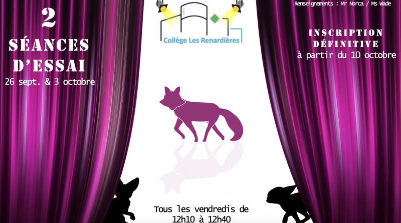 Le drama club a lieu le vendredi midi de 12h10 a 12h40 en salle de réunion. Ce club